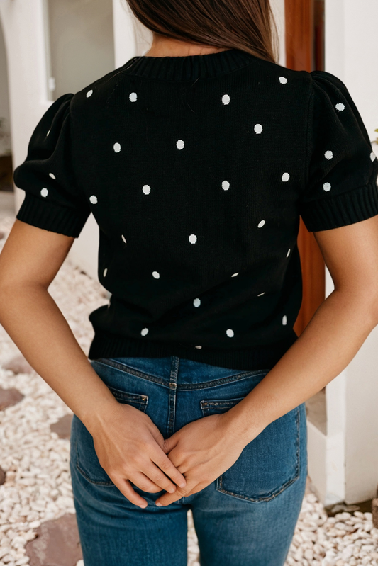 Elegant Polka Dot Bubble Short Sleeve Sweater
