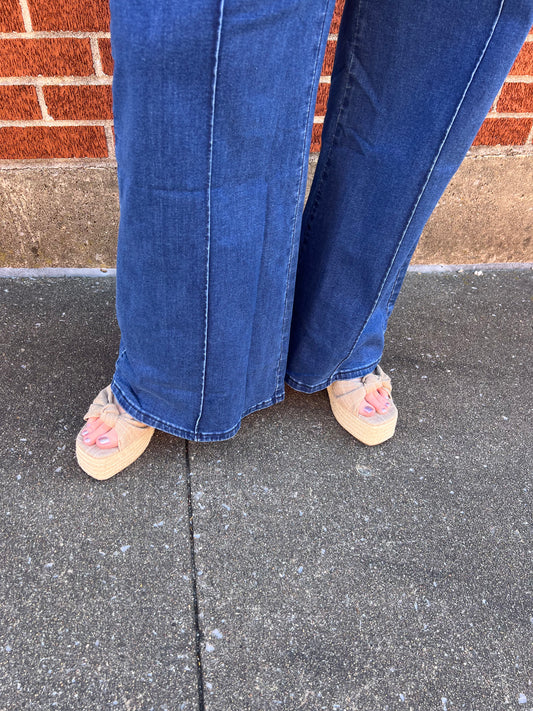 LDC Seamed Zipper Spaghetti Strap High Waist Flared Jumpsuit