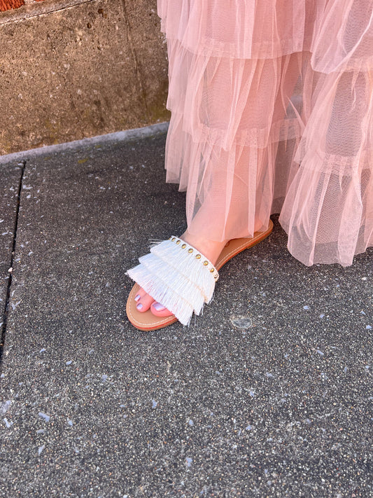 CCOCCI FINE SATIN FRINGE TASSEL FLAT SANDAL