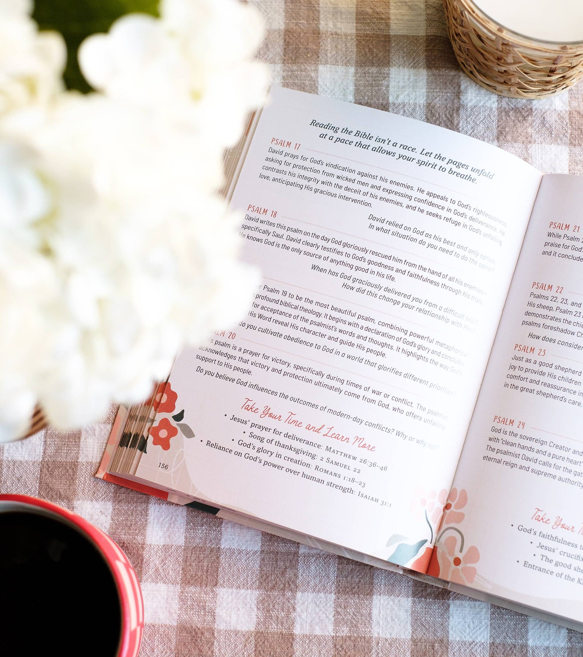 So find a comfortable spot with your Bible. Slow down, be intentional, read and think and learn. Take your time with this unhurried guide to God’s Word.
